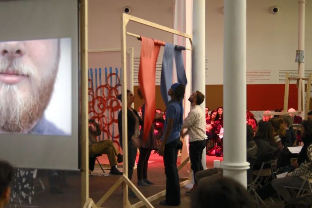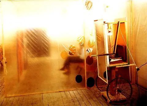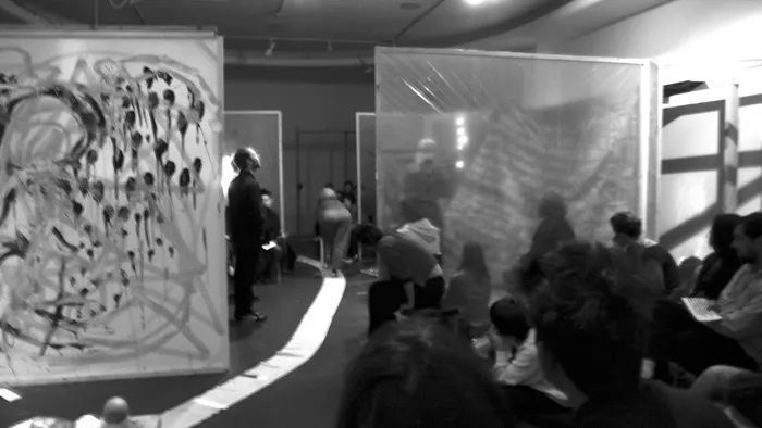 这出戏演区是画廊的三个展区,观众直接进入演区并自然地将自己的行动戏剧化。观众的每一种活动都变成境遇的一部分并随时改变着境遇。他既是在表演,也是在生活。