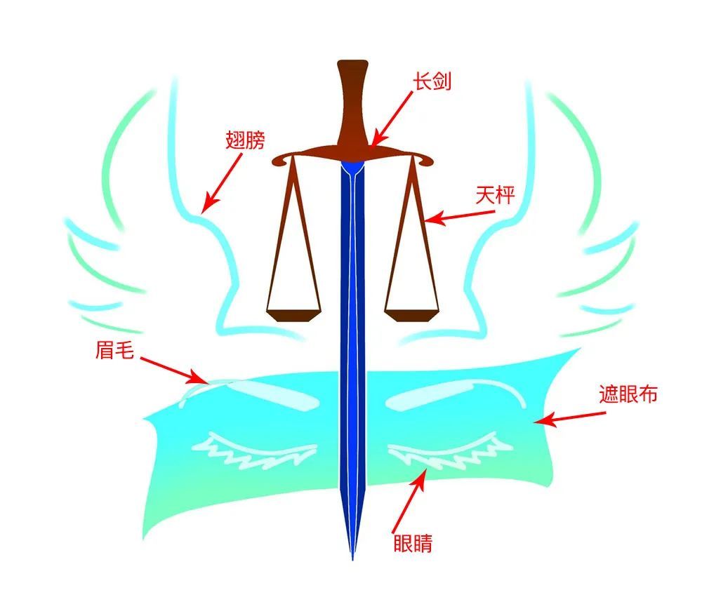 利剑和天枰就不多解释了,代表了正义和公平嘛。