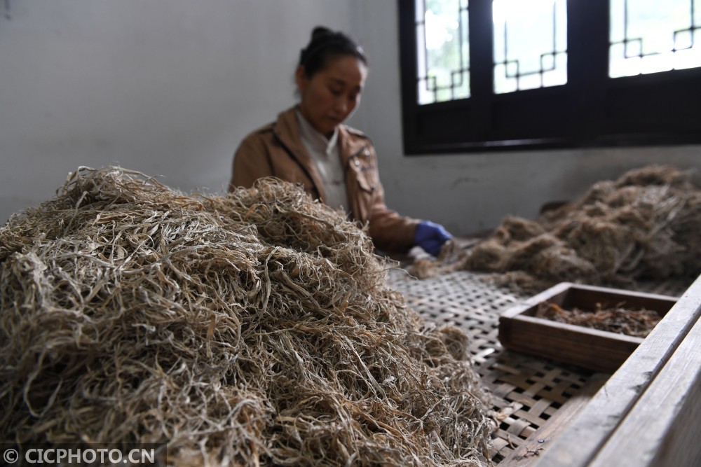 2020年5月30日,安徽泾县宣纸厂工人在进行选料作业。CICPHOTO/张大岗 摄