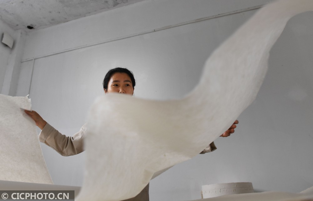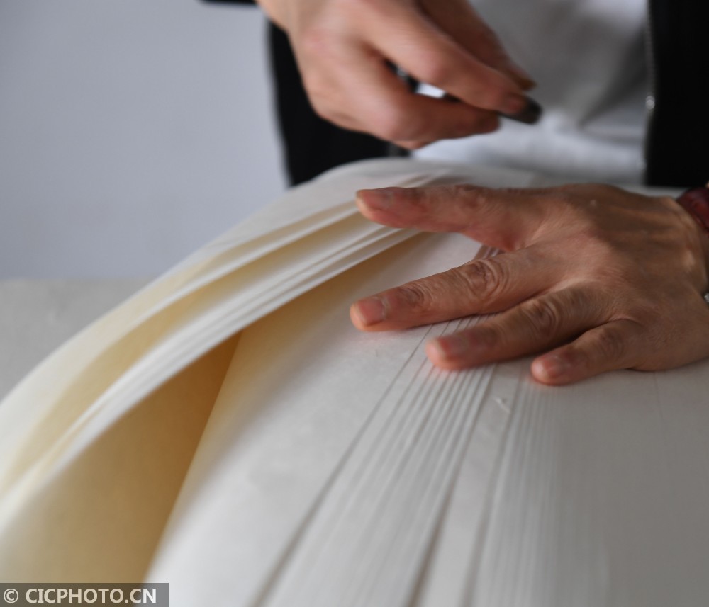 2020年5月30日,安徽泾县宣纸厂质检员曹红霞在进行检纸作业。CICPHOTO/张大岗 摄
