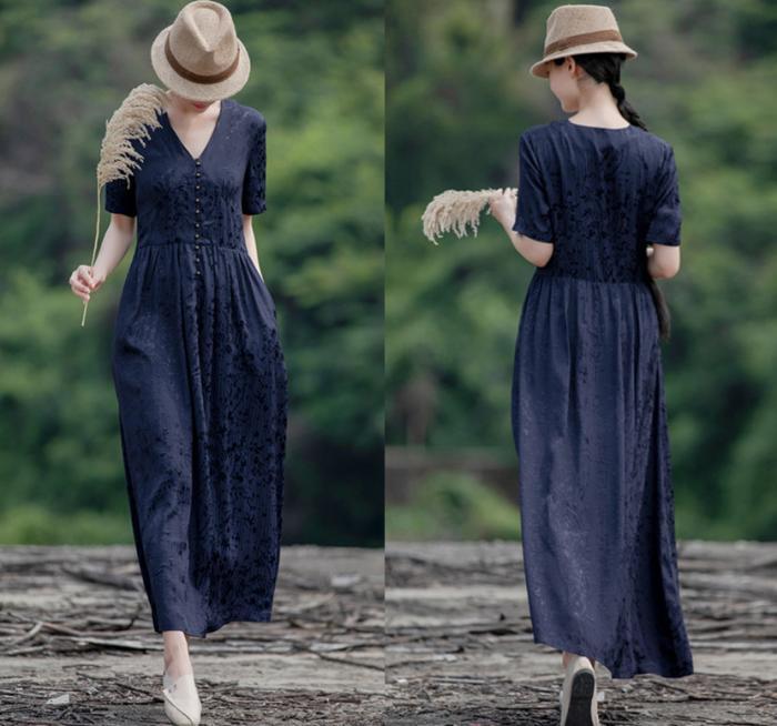 优雅精致的提花长裙,高端大气,很有肌理感。V领设计,露出迷人的锁骨,还可以带条金色项链点缀,显得更美丽动人。到脚踝处的长度,端庄大方,搭配上轻松舒适的平底鞋,尽显东方女性迷人魅力!