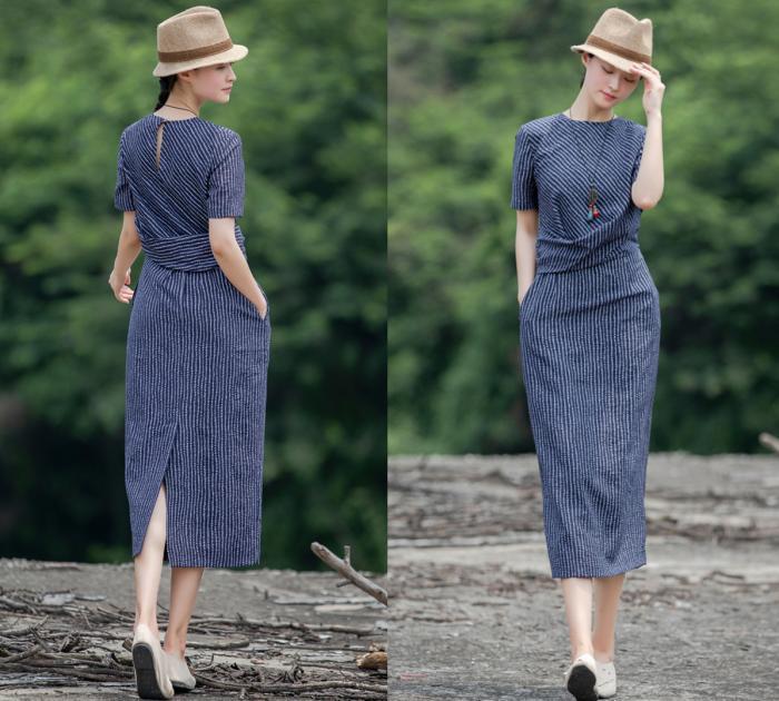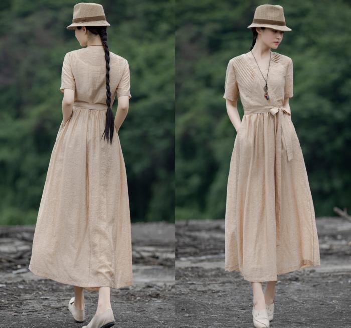 棉麻面料透气性好,穿在身上非常清爽舒适。耐看的紫色象征着高贵、优雅、给人很大气的感觉,腰部腰带收腰设计,收出了纤细的腰身,显得更有女人味。脚穿一双浅色软底单鞋,尽显优雅文艺范儿。