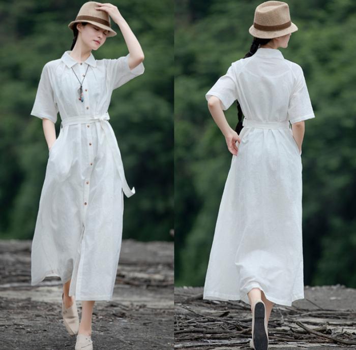 炎热的夏日,穿件白色长裙非常的清凉时尚,仙气十足!衬衫式的设计风格,给人很美的干练感。精致的小翻领修饰脸型,尽显温婉女人味。搭配一双米白色平底鞋,轻松自在,更有文艺、淑女气质。