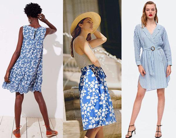 当谈到蓝色时,想到的第一种材料是牛仔布。近来,已经开发出了具有各种技术的材料,因此即使牛仔布也可以很酷。左图一看就是属于比较柔软的有垂坠感的裙裙,中间的为了塑造出挺拔感,可能布料用的会比较硬;右侧的是中和了左边和中间图中模特的优点~用白色和蓝色织成的青年布材料夏天轻便,因为它轻便舒适。如果小仙女们选择通风良好的设计,那么它将成为夏季大量使用的日常用品。Chambray Blue非常适合打造休闲却年轻的风格。买到就是赚到啊!小仙女们不学一学吗?