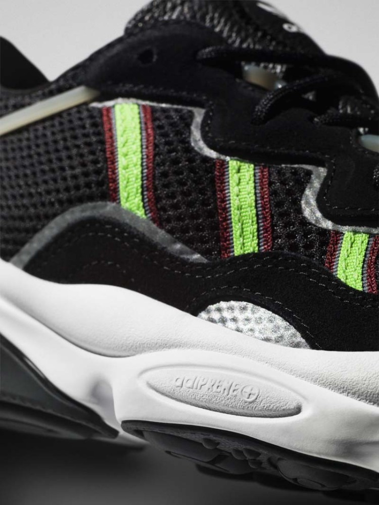 Ozweego将充满科幻感的设计语言注入90年代经典鞋型。在经典鞋型载体下adidas也并未选择当前大热的boost大底,而选择了boost的“前任”、adidas的前当家缓震科技adiPRENE+。