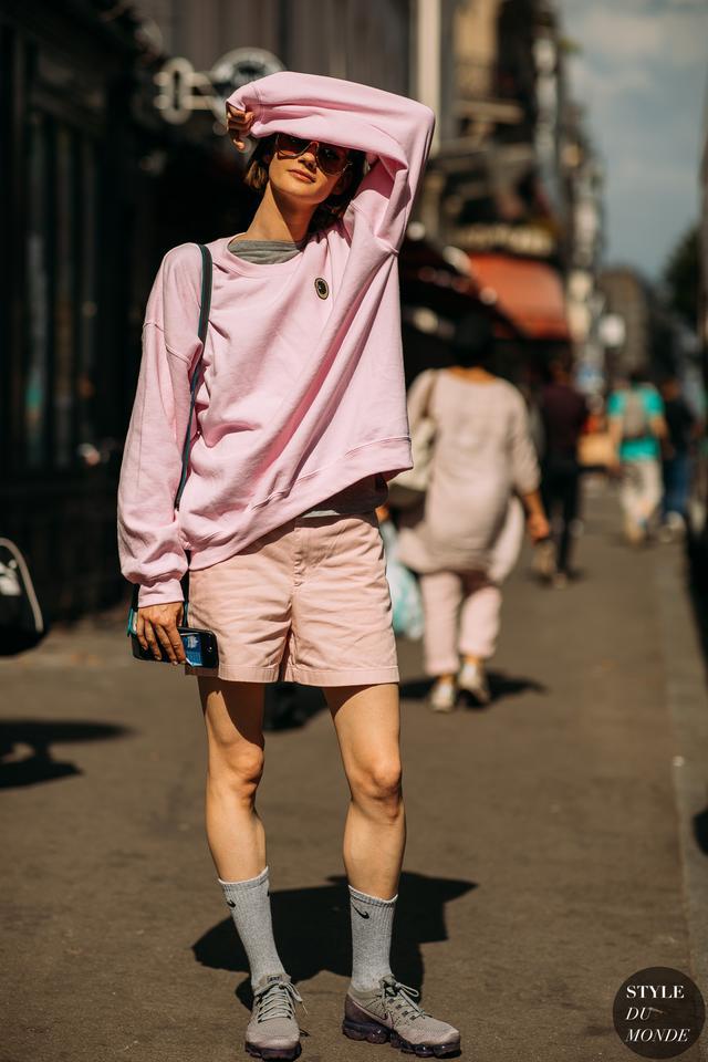 卫衣也是夏日里不错的休闲单品,把它和五分短裤结合起来形成上长下短的对比,完美地丰富了造型的层次感。