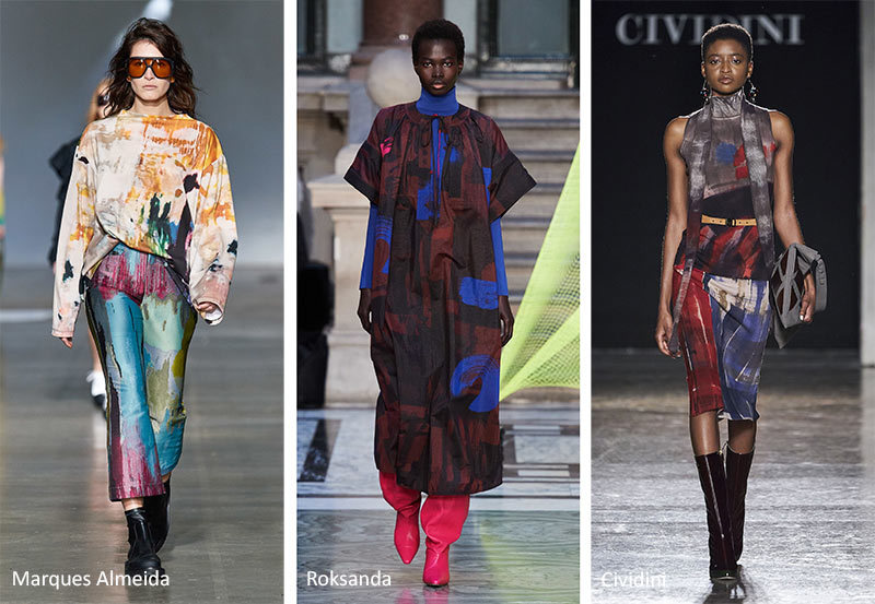 Cividini的印花更容易让人联想到抽象的笔触,包括一套覆盖着红色和蓝色笔触的无袖裙装。我们还在Roksanda发现了一些油漆飞溅的痕迹。