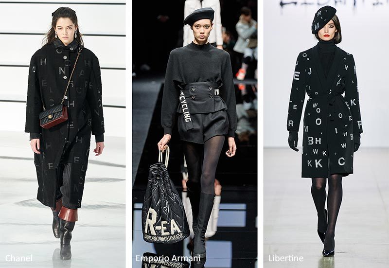 在香奈儿,一件超大号的黑色外套上点缀着字母C、H、A、N、E、L(还有数字5),这让它成为世界上最简单、最时尚的单词组合。在Libertine, t恤也被用在了各种服装上(包括黑色外套,也包括色彩鲜艳的服装)。这些字母看起来又一次乱成一团,不过这一次,它们取自亚瑟·兰波(Arthur Rimbaud)的诗《冬天的梦》(Winter Dream)。