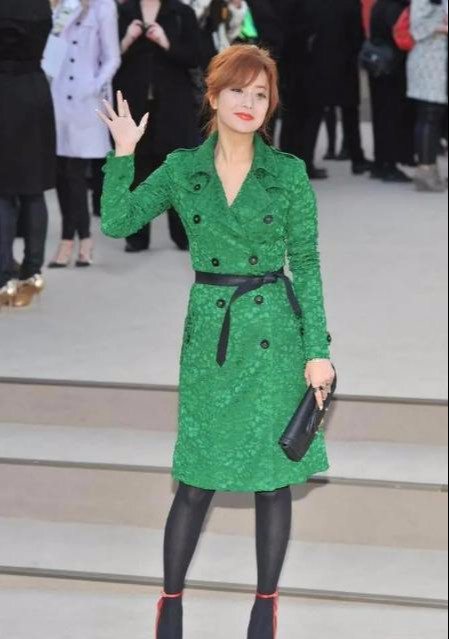 绿色是很挑肤色的颜色,尤其是大面积的运用,对于肤色和整体造型的时尚感要求都非常的高,稍不留神就会穿出强烈的土气感,而金喜善大胆的搭配了橘黄色的高跟鞋,整体效果实在是一言难尽,全靠颜值在撑着。赵薇的穿搭配色则更适合大多数的亚洲女性,黑色外套搭配红裙,让红裙更浓郁复古,很有韵味。