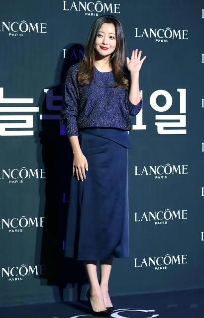 其实金喜善的身材保持的还是很不错的,能够看出她属于身材纤瘦类型,腰部也比较纤细,像这样比较瘦的女人,更适合修身的穿搭。
