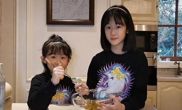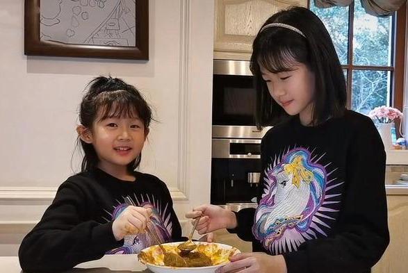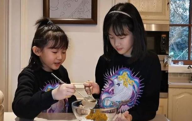 鲍蕾女儿大秀厨艺!小叶子贝儿穿姐妹装超抢镜,颜值完美继承陆毅
