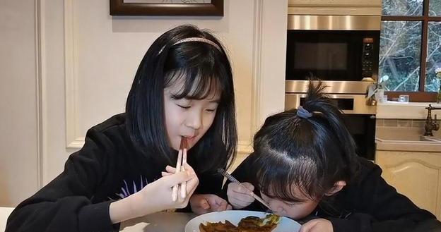 小叶子同样也是一身卫衣在身,整个人看起来也是乖巧可爱极了,扎起高高的马尾搭配空气刘海,整个人看起来更加可爱又不失俏皮,这真的是完美的继承了鲍蕾和陆毅的超高颜值呀,两个女儿站在一起也超级抢眼。不得不感叹,两人做起美食来也是十分的用心,出锅之后两人算是用抢的方式来吃自己的美食,单单是看到成品相比都超级好吃,真的是一对美貌集才华于一身的姐妹花。