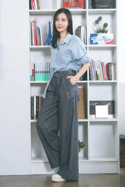 其实下身臃肿的女人不一定非要穿长裙,宽松的裤装也能达到很好的显瘦效果,建议选择宽松长直筒裤,显瘦遮肉的同时还特别的百搭。